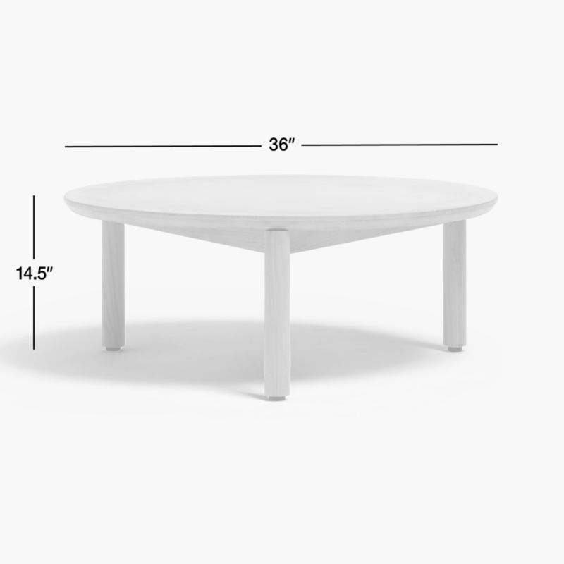 Designed to accompany our Neighbor Haven outdoor lounge collection, this coffee table mixes materials and shapes to provide the perfect complement. Natural teak shapes the rounded legs and tripod base, topped with a bull-nosed round of grey concrete. Pair the coffee table with the matching side table for a coordinated outdoor living space.