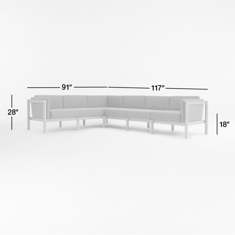 This large, deep-seated sectional sofa invites family and friends to kick back and enjoy the great outdoors. Boxy seat and back cushions upholstered in soft rust are curl-up comfy, while the sofa's slim side bolsters add a soft layer for draping arms. Natural teak shapes the chunky, rounded frames complemented by hand-stretched polyester rope backs that angle slightly for a comfortable recline. Offering living-room looks with surprising durability, the L-shaped outdoor sectional withstands the elements in weather-resistant teak and fast-drying foam cushions.