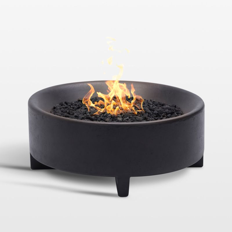 Gather round the inviting warmth and modern style of the Rook fire table. Fueled by natural gas, the clean-lined, bowl-shaped fire pit rivals the look and feel of a wood-burning fire, surpassing it in efficiency thanks to the even heat distribution of lava rocks. Each round fire table is hand cast of long-lasting, fiber-reinforced concrete with a custom charcoal grey patina finish. Pop on the slatted teak lid when the heating element isn't needed to create an outdoor coffee table.