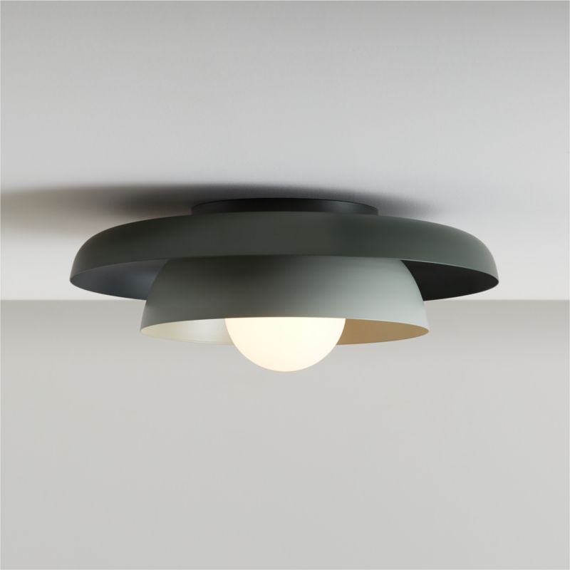 Create a timeless mid-century style moment in your nursery or kid's room with our sculptural Nello Flush Mount Ceiling Light. The elevated design boasts double saucer-shaped shades and a gorgeous color combo of earthy light sage and olive green. What's more, its frosted acrylic globe makes it a smart choice for high-traffic kid spaces.