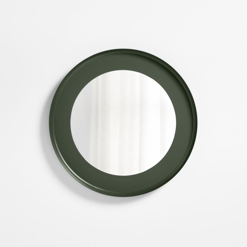 Create a timeless mid-century style moment in your nursery or kid's room with our Round Wall Mirror. An extension of our popular Nello collection, the mirror features a sleek saucer design in a versatile olive green hue.