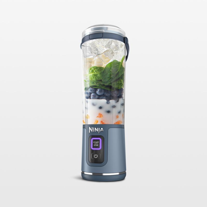 Blend smoothies, juices and frozen cocktails on the go with this portable blender in timeless denim blue. The vessel's ribbed interior creates a blending vortex, and stainless steel blades blast through ice cubes and frozen ingredients. Fitted with a hinged carrying handle and an easy-open lid that opens with one hand, the to-go vessel goes everywhere with you. The rechargeable base blends up to 15 drinks on a single charge using the included USB cable, and the cup and lid clean up easily in the dishwasher.