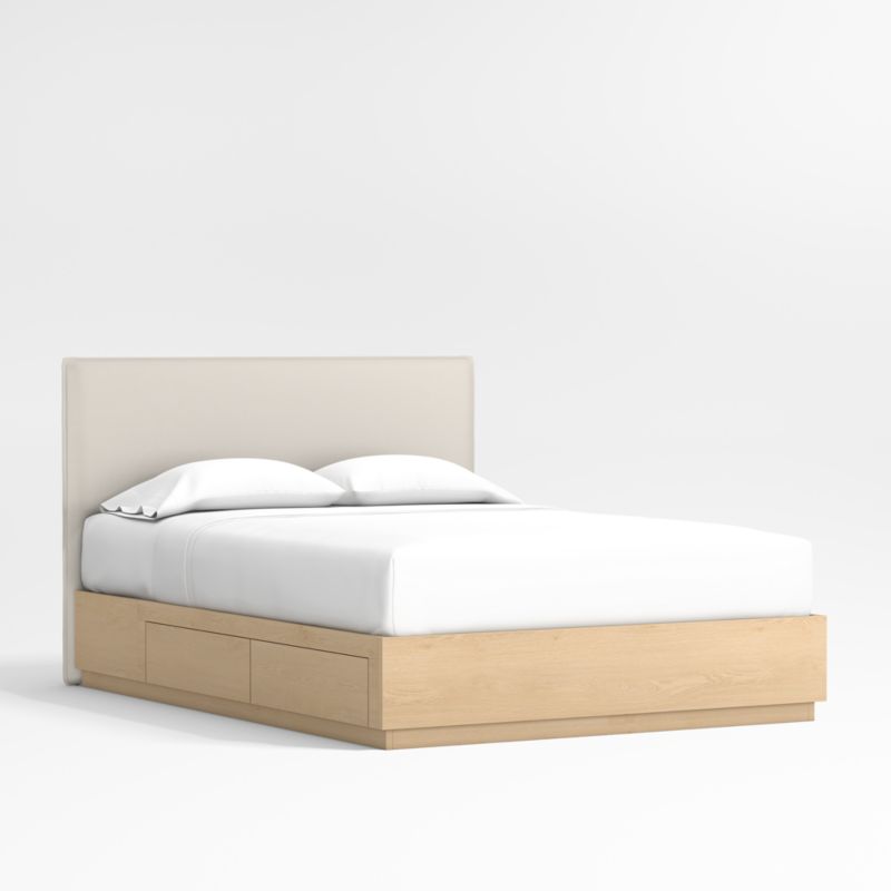 Noa Cream Upholstered Flange Kids Full Bed with Natural Wood Storage Base