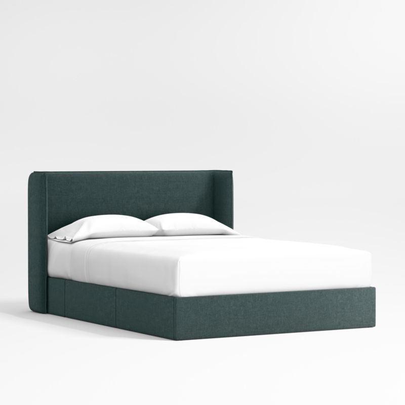 Our Noa Upholstered Storage Bed sets a smart and stylish foundation for a room that can grow with your child. With its soft and lightly textured deep green upholstery, the piece has a breezy, timeless sensibility that works with any decor. Two under-bed drawers give it added practical purpose, while the headboard's stylish wraparound edges create a cozy sense of enclosure that kids will love for years to come.
