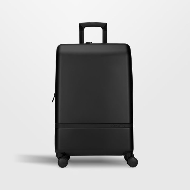 NOMATIC makes packing and plane travel as painless as possible with this sleek checked suitcase. Clad in classic black, the faceted polycarbonate shell is virtually indestructible. Magnetic compression straps, zippered compartments, folding compression panels and full-perimeter expansion maximize the Check-In's capacity. Silent wheels and a three-stage handle maneuver smoothly through airports, train stations and beyond, while locking zippers offer security as you explore the world.