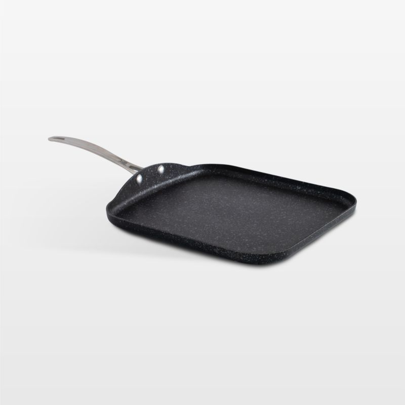 Legendary for bakeware, Nordic Ware brings the same excellence to cookware with this restaurant-quality griddle. Three ceramic layers give the restaurant-grade aluminized steel pan a non-stick finish that lasts. The black coating is showered with white speckles for a charming look reminiscent of classic campfire cookware. Fitted with a stainless steel handle, the large square griddle goes from stove to oven to table to serve eggs, bacon, pancakes and more.