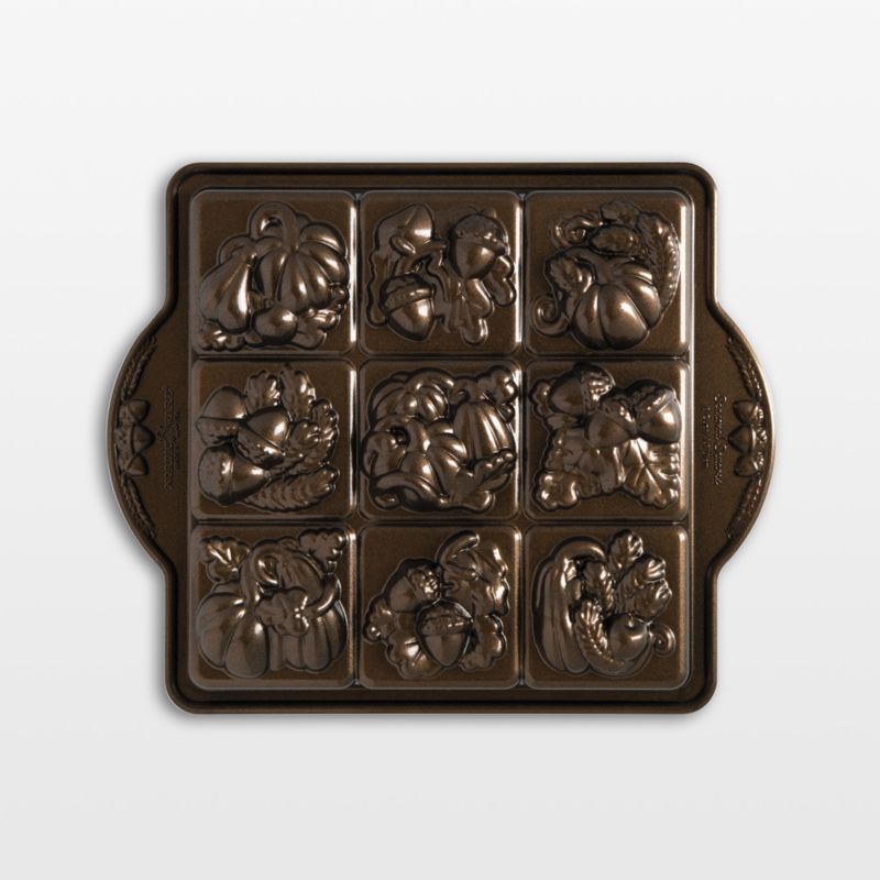 Bake charming treats for autumn breakfasts, Thanksgiving desserts and cozy coffee breaks. Particularly perfect for pumpkin- and maple-based recipes, the pan creates nine cake, brownie or quick bread squares topped with gourds, acorns and leaves that make a tempting addition to the fall table. Cast aluminum keeps the ornate details crisp, while the non-stick coating ensures a clean, easy release. The gorgeous pan makes a sweet and seasonal gift for your favorite baker.