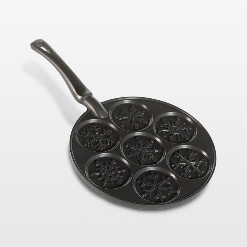 Make winter mornings extra cozy with this snowflake pancake pan. Crafted of sturdy cast aluminum, the clever stovetop pan cooks up seven silver dollar pancakes at the same time, each one embossed with a unique snowflake. The non-stick coating ensures easy release and a quick cleanup. Use our exclusive pan to make sweet pancakes for Christmas morning and holiday brunches or savory pancakes for cocktail party appetizers throughout the season.