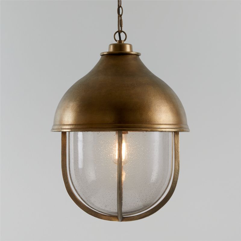 Vintage maritime cage lights get an elevated update in this pendant by Leanne Ford. Finished in brass, the roughly cast frame encloses a dome of charmingly bubbled glass for a rustic-yet-glam look. Hang a nautical duo or trio over the kitchen island, or group the large cage pendant with its smaller counterpart in a gleaming cluster.