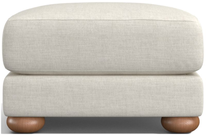 There's nothing like the inviting sophistication of a classic club chair and the feet-up comfort of a coordinating ottoman. Covered in a luxurious olive chenille made of recycled polyester, the ottoman features a substantial fiber- and down-filled cushion that delivers indulgent comfort as a footrest or extra seat. Solid oak bun feet add charm as they nod to Northmoor's traditional roots.