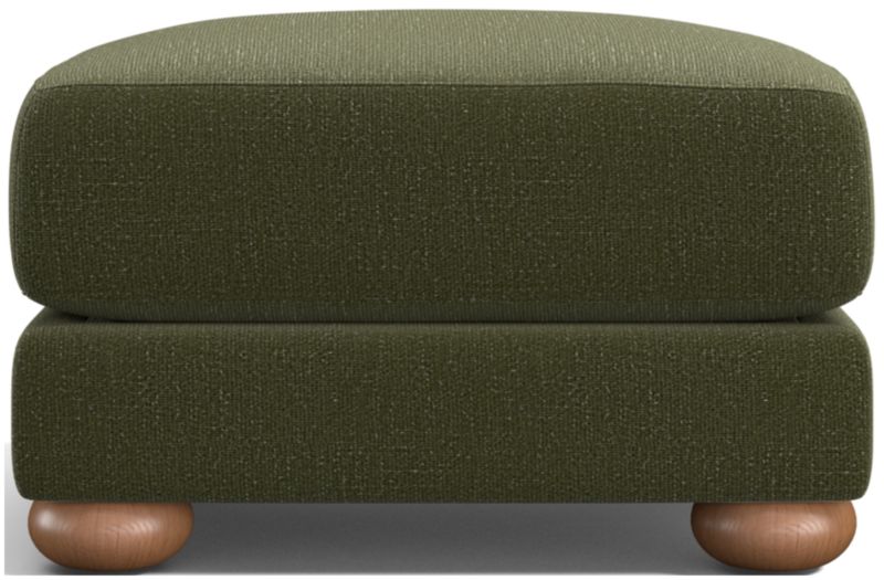 There's nothing like the inviting sophistication of a classic club chair and the feet-up comfort of a coordinating ottoman. Covered in a luxurious olive chenille made of recycled polyester, the ottoman features a substantial fiber- and down-filled cushion that delivers indulgent comfort as a footrest or extra seat. Solid oak bun feet add charm as they nod to Northmoor's traditional roots.