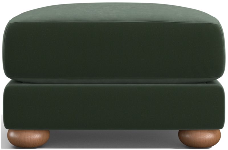 There's nothing like the inviting sophistication of a classic club chair and the feet-up comfort of a coordinating ottoman. Covered in a luxurious olive chenille made of recycled polyester, the ottoman features a substantial fiber- and down-filled cushion that delivers indulgent comfort as a footrest or extra seat. Solid oak bun feet add charm as they nod to Northmoor's traditional roots.