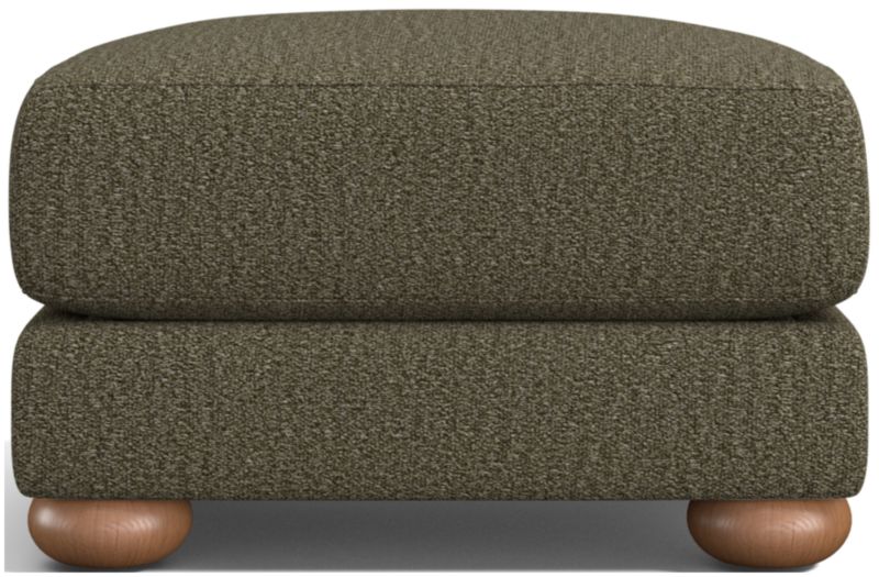 There's nothing like the inviting sophistication of a classic club chair and the feet-up comfort of a coordinating ottoman. Covered in a luxurious olive chenille made of recycled polyester, the ottoman features a substantial fiber- and down-filled cushion that delivers indulgent comfort as a footrest or extra seat. Solid oak bun feet add charm as they nod to Northmoor's traditional roots.