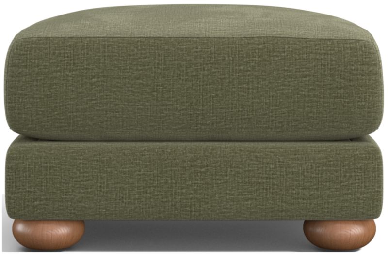 There's nothing like the inviting sophistication of a classic club chair and the feet-up comfort of a coordinating ottoman. Covered in a luxurious olive chenille made of recycled polyester, the ottoman features a substantial fiber- and down-filled cushion that delivers indulgent comfort as a footrest or extra seat. Solid oak bun feet add charm as they nod to Northmoor's traditional roots.