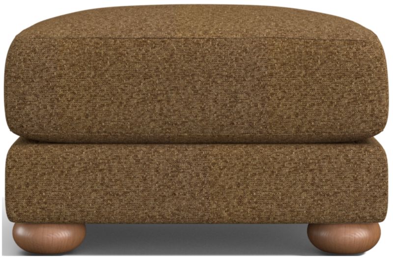 There's nothing like the inviting sophistication of a classic club chair and the feet-up comfort of a coordinating ottoman. Covered in a luxurious olive chenille made of recycled polyester, the ottoman features a substantial fiber- and down-filled cushion that delivers indulgent comfort as a footrest or extra seat. Solid oak bun feet add charm as they nod to Northmoor's traditional roots.