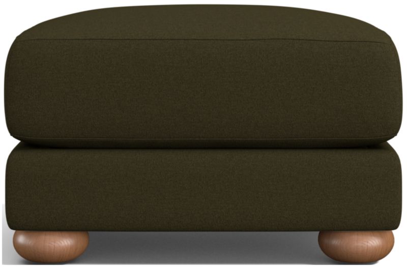 There's nothing like the inviting sophistication of a classic club chair and the feet-up comfort of a coordinating ottoman. Covered in a luxurious olive chenille made of recycled polyester, the ottoman features a substantial fiber- and down-filled cushion that delivers indulgent comfort as a footrest or extra seat. Solid oak bun feet add charm as they nod to Northmoor's traditional roots.