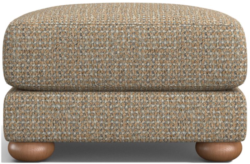 There's nothing like the inviting sophistication of a classic club chair and the feet-up comfort of a coordinating ottoman. Covered in a luxurious olive chenille made of recycled polyester, the ottoman features a substantial fiber- and down-filled cushion that delivers indulgent comfort as a footrest or extra seat. Solid oak bun feet add charm as they nod to Northmoor's traditional roots.