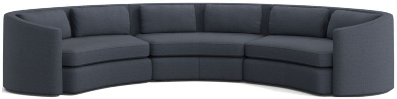 Our Nouveau sectional is a curvy, style-forward stunner that invites you to unwind with open arms. The combination of a wedge and right- and left-arm sofas sweeps a fluid curve from arm to back, hosting squishable back pillows that are scaled slightly smaller to enhance the effect. With soft yet firm cushions that sit somewhere between upright and loungey, the three-piece sectional makes itself at home in casual and more formal settings. Upholstered in a performance polyester fabric made from recycled plastic water bottles, the Nouveau sectional sofa is a Crate & Barrel exclusive.