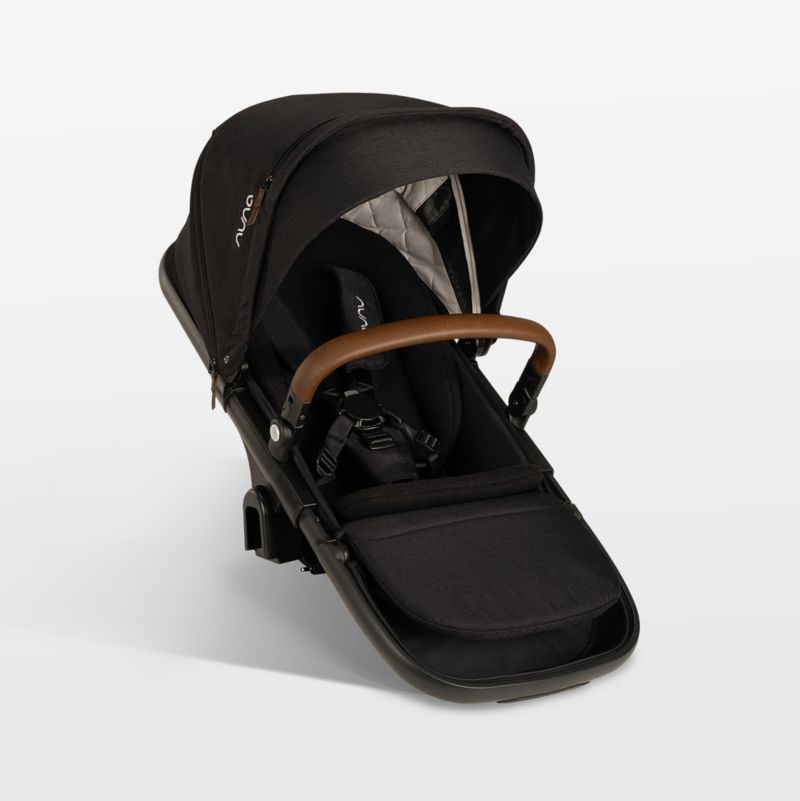 The perfect accessory for growing families, the Nuna DEMI next Sibling Seat allows you to easily transform your single Nuna DEMI next stroller (sold separately) into a double stroller without compromising style or functionality. Crafted from premium materials, this sleek black add-on seat has an easy-to-use harness system that keeps little ones securely fastened with a self-guiding magnetic buckle. The rugged, all-season seat features a one-hand, 4-position recline plus adjustable calf support to keep kids comfortable. A removable zip-to-extend protective UPF 50+ canopy shields riders from sun and wind, while the Sky drape mesh canopy cover offers added protection from the elements. Suitable for babies and big kids alike, this seat's simple and innovative design makes it easy to stroll as a traveling twosome.