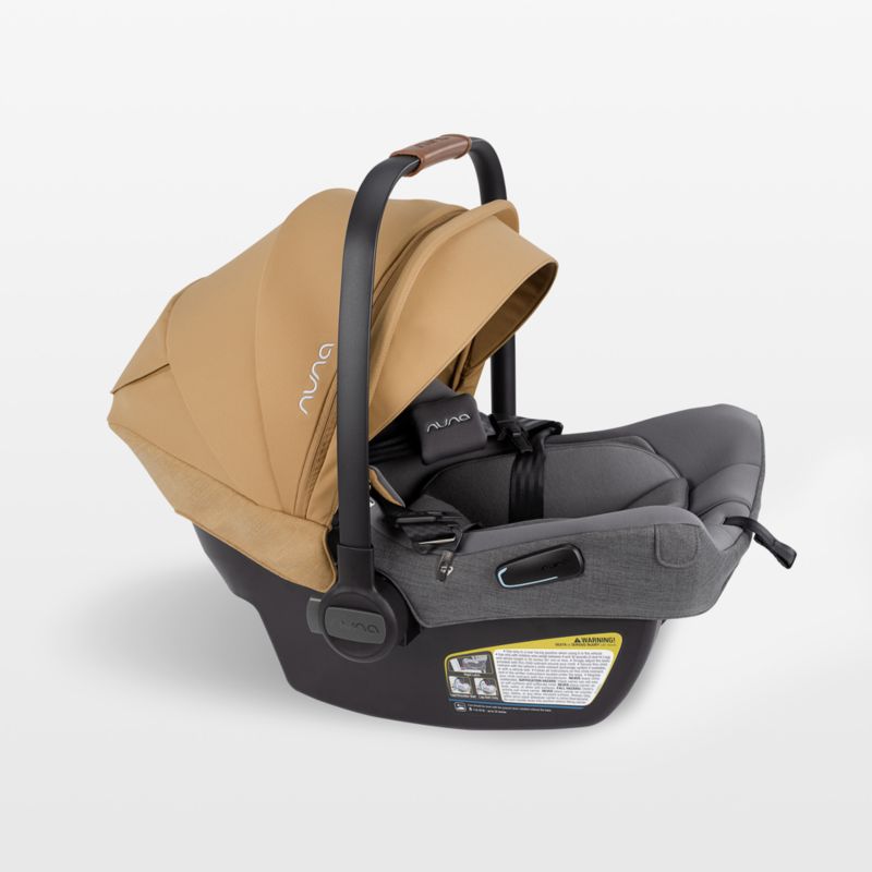 Treat baby to the most comfortable ride home from the hospital—and to the library, cafe and park—in this lightweight infant car seat. An ultra-soft and breathable merino wool insert gives infants the perfect fit, then removes easily as they grow. The full-coverage canopy protects little ones from the sun. Installation only takes five seconds, with indicators that turn green when the base is connected correctly so you can travel with confidence. Or install the car seat without the base using vehicle seat belts in cabs, airplanes and rental cars. The camel brown fabric coordinates with the leatherette handle for a warm, modern look in your car and on the go.