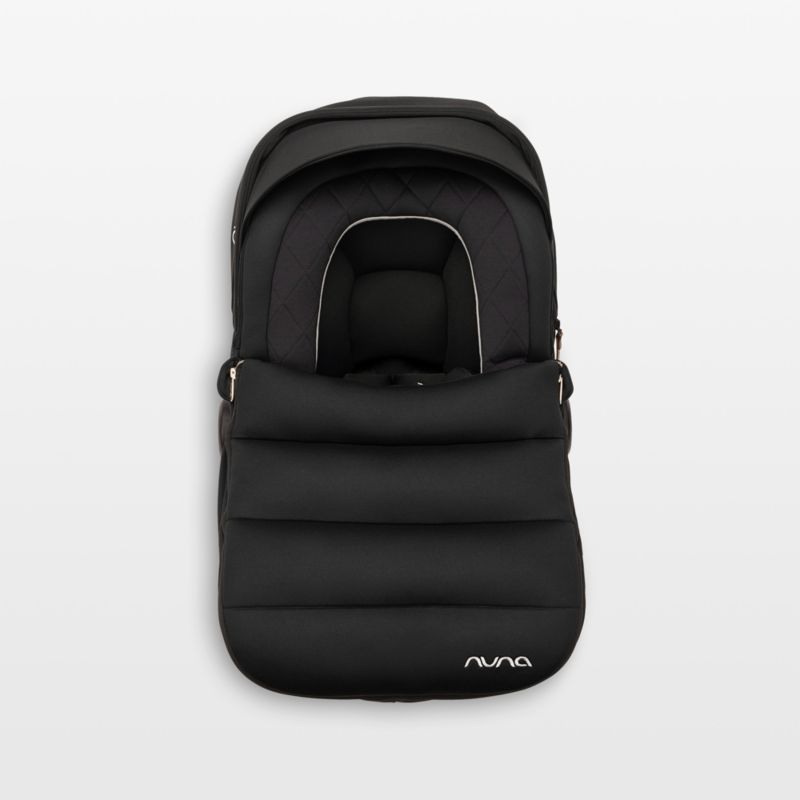 Compatible with all PIPA™ car seats, the Nuna® winter footmuff is reminiscent of a luxurious puffer coat, with an ultra-soft merino wool lining that keeps baby cozy and comfortable. Easy to put on and remove from the car seat, it includes a smart top flap that folds down and stays in place with magnets as needed.