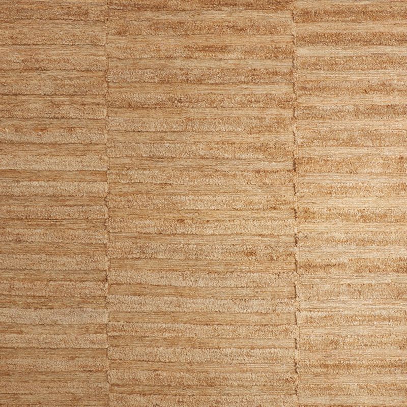 Oaxaca updates the classic jute rug with dimension, geometry and artistry. Skilled craftspeople knot pure jute by hand, then use a loop-and-cut method to create offset stripes that alternate high and low piles. The resulting stepped pattern offers textural interest and a chunky appeal. Oaxaca's natural warmth is right at home in a sunroom, entryway or modern organic dining room.