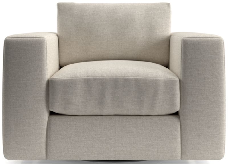 The modern ease of coastal living, no matter where you live. Oceanside brings laid-back style to the living room with its clean lines, soft-yet-supportive cushions and ultra-wide arms for perching your drink or device. Scaled for everyday ease with a regular seat depth and height, the swivel chair is perfect for anyone who likes to sit a little higher and more upright .Designed to swivel a full 360 for room-sweeping views, the chair will become your go-to place for lounging. You'll love Oceanside in our durable, family-friendly performance fabric.