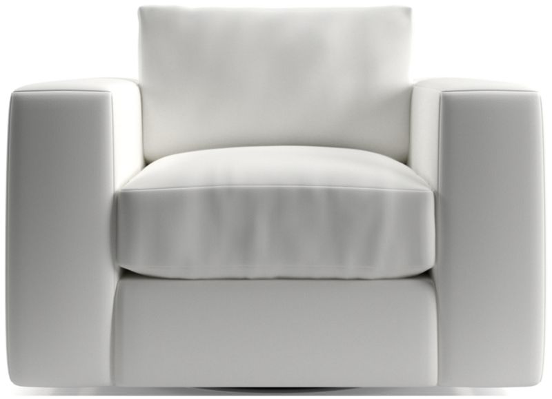 The modern ease of coastal living, no matter where you live. Oceanside brings laid-back style to the living room with its clean lines, soft-yet-supportive cushions and ultra-wide arms for perching your drink or device. Scaled for everyday ease with a regular seat depth and height, the swivel chair is perfect for anyone who likes to sit a little higher and more upright .Designed to swivel a full 360 for room-sweeping views, the chair will become your go-to place for lounging. You'll love Oceanside in our durable, family-friendly performance fabric.