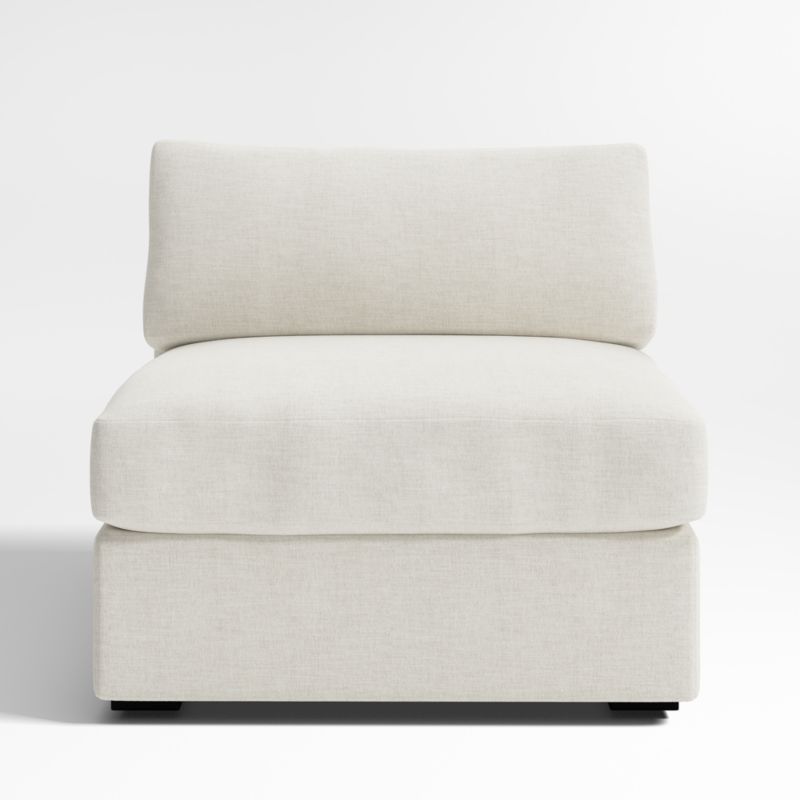 The modern ease of coastal living, no matter where you live. Our Oceanside sectional brings laid-back style to the living room with its clean lines, soft-yet-supportive cushions and ultra-wide arms for perching your drink or device. The armless chair is scaled for everyday ease with a regular seat depth and height, perfect for anyone who likes to sit a little higher and more upright. And as your go-to place for lounging, you'll love Oceanside in our durable, family-friendly performance fabric. Combine the armless chair with other components to create the sectional sofa that's right for you.