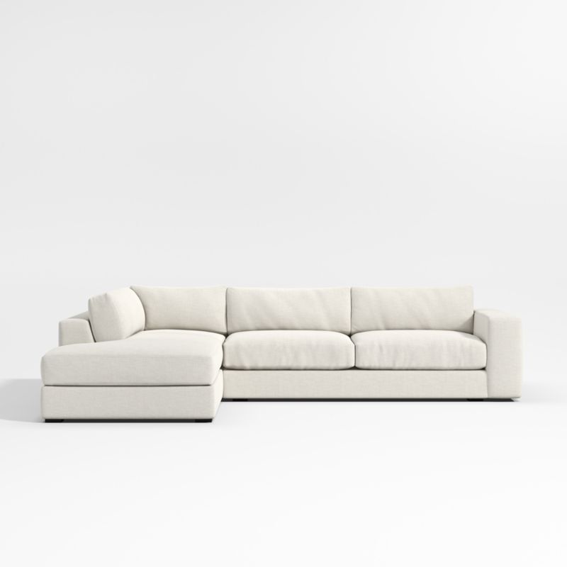 The modern ease of coastal living, no matter where you live. Our Oceanside sectional brings laid-back style to the living room with its clean lines, soft-yet-supportive cushions and ultra-wide arms for perching your drink or device. Scaled with an extra-deep and low seat, the combination of left-arm corner bumper and right-arm sofa is great for anyone who loves laid-back lounging and a low, modern look. And as your go-to place for lounging, you'll love Oceanside in our durable, family-friendly performance fabric.