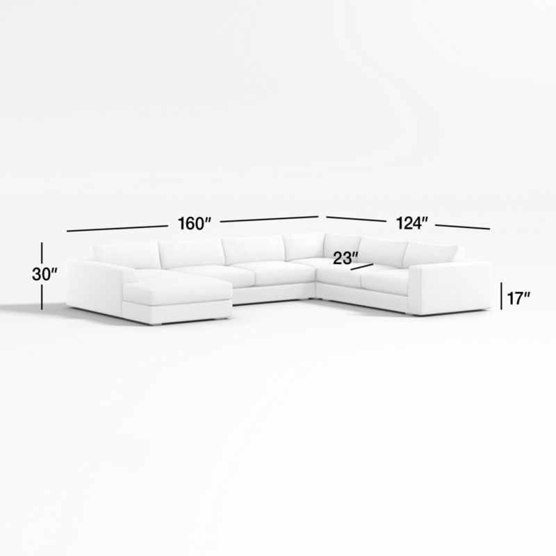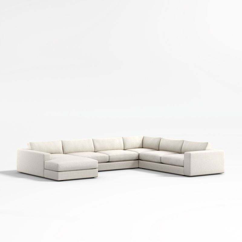 The modern ease of coastal living, no matter where you live. Our Oceanside sectional brings laid-back style to the living room with its clean lines, soft-yet-supportive cushions and ultra-wide arms for perching your drink or device. Scaled with an extra-deep and low seat, the four-piece combination—right-arm sofa, corner, armless sofa and left-arm chaise—is great for anyone who loves laid-back lounging and a low, modern look. And as your go-to place for lounging, you'll love Oceanside in our durable, family-friendly performance fabric.