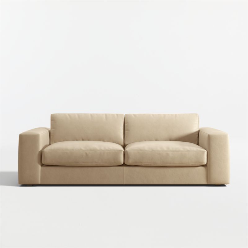 The rich color and buttery softness of top-grain leather brings sleek sophistication to the breezy ease and modern attitude of our Oceanside sofa. Set on one-inch legs recessed just beyond the shadow line, the low-profile sofa floats in a room. The wrap-around flow from arm to back gives it a neat, fully finished look from any angle. Soft-yet-structured cushions provide just enough support and sit a little bit deep for exceptional curl-up comfort. We love the generous width of the arms, perfect for propping books or serving as a casual perch for conversing.