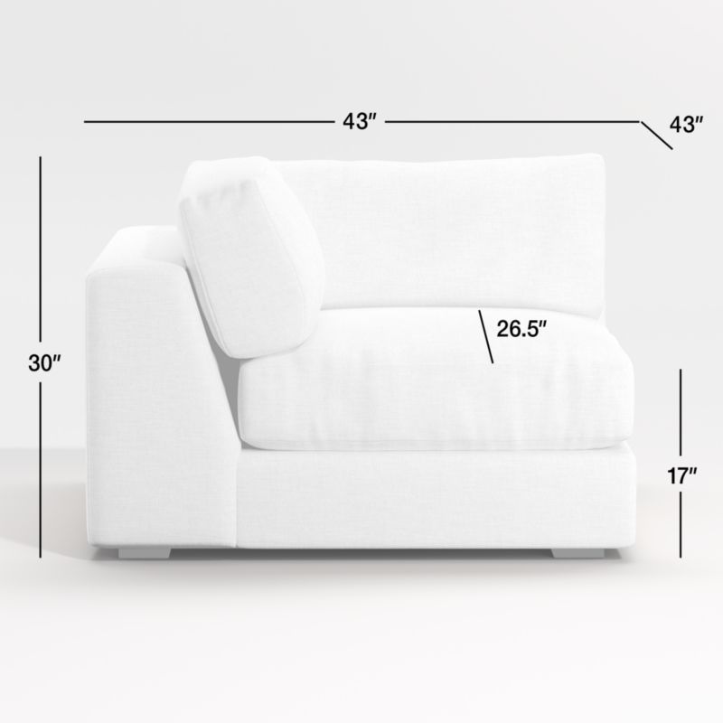 The rich color and buttery softness of top-grain leather brings sleek sophistication to the breezy ease and modern attitude of our Oceanside sectional collection. Set on one-inch legs recessed just beyond the shadow line, the low-profile corner floats in a room with a neat, fully finished look at any angle. Soft-yet-structured cushions provide just enough support and sit a little bit deep for exceptional curl-up comfort. Combine the corner with other Oceanside sectional pieces to create just the right configuration to suit your space.