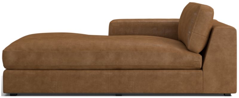 The rich color and buttery softness of top-grain leather brings sleek sophistication to the breezy ease and modern attitude of our Oceanside sectional collection. Set on one-inch legs recessed just beyond the shadow line, the low-profile chaise floats in a room. The wrap-around flow from arm to back gives it a neat, fully finished look from any angle. Soft-yet-structured cushions provide just enough support and sit a little bit deep for exceptional curl-up comfort. Combine the left-arm chaise with other Oceanside sectional pieces to create just the right configuration to suit your space.