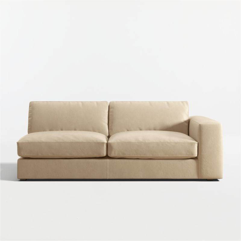 The rich color and buttery softness of top-grain leather brings sleek sophistication to the breezy ease and modern attitude of our Oceanside sectional collection. Set on one-inch legs recessed just beyond the shadow line, the low-profile sofa floats in a room. The wrap-around flow from arm to back gives it a neat, fully finished look from any angle. Soft-yet-structured cushions provide just enough support and sit a little bit deep for exceptional curl-up comfort. Combine the right-arm sofa with other Oceanside sectional pieces to create just the right configuration to suit your space.