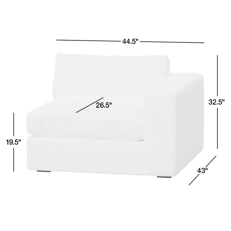 The modern ease of coastal living, no matter where you live. Oceanside brings laid-back style to the living room with its clean lines, soft-yet-supportive cushions and ultra-wide arms for perching your drink or device. Scaled with an extra-deep seat and regular seat height, the right-arm chair is spacious for laid-back lounging yet perches you a little higher for everyday ease. And as your go-to place for lounging, you'll love Oceanside in our durable, family-friendly performance fabric. Combine the right-arm chair with other components to create the Oceanside sectional sofa that's right for you.
