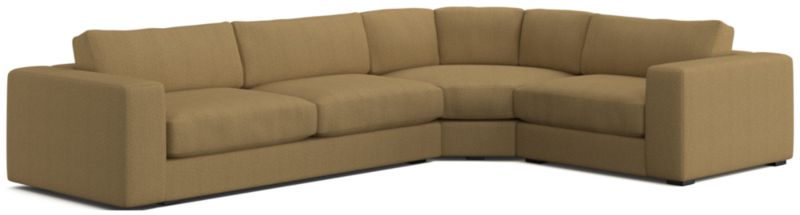 The modern ease of coastal living, no matter where you live. Oceanside brings laid-back style to the living room with its clean lines, soft-yet-supportive cushions and ultra-wide arms for perching your drink or device. Scaled with a regular seat depth and low seats, the three-piece combination—a wedge with left-arm sofa and right-arm chair—is great for anyone who likes to sit a little more upright, yet loves the low and modern look. And as your go-to place for lounging, you'll love Oceanside in our durable, family-friendly performance fabric.