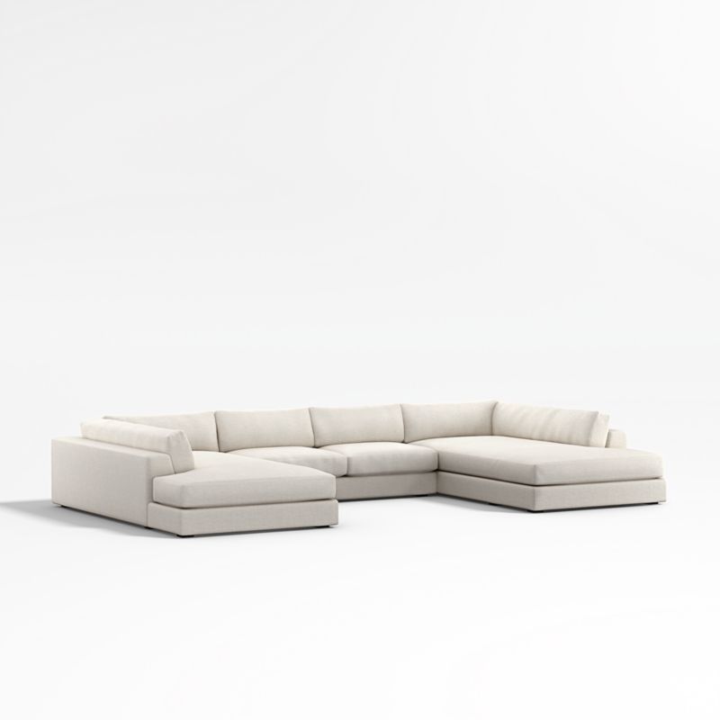 Clean lines and an on-trend, how-low-can-you-go seat give our Oceanside sectional its breezy ease and modern attitude. Set on one-inch legs set just beyond the shadow line, the three-piece sectional—an armless loveseat flanked by left- and right-arm bumpers—floats in a room, and the wrap-around flow from arm to back gives the low-profile arrangement a neat, fully finished look from any angle. Soft-yet-structured cushions provide just enough support for a comfortable seat you won't want to leave. We love the generous width of the arms, perfect for propping books or serving as a casual perch for conversing.