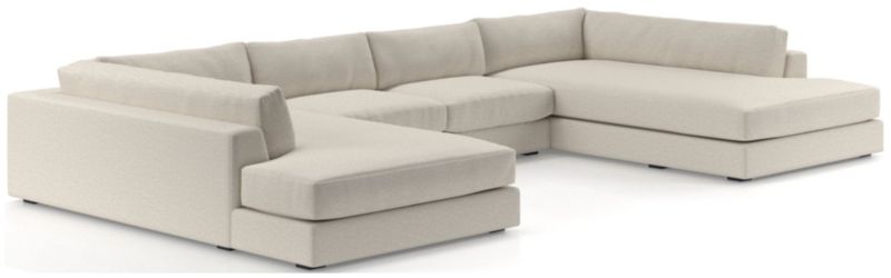 Clean lines and an on-trend, how-low-can-you-go seat give our Oceanside sectional its breezy ease and modern attitude. Set on one-inch legs set just beyond the shadow line, the three-piece sectional—an armless loveseat flanked by left- and right-arm bumpers—floats in a room, and the wrap-around flow from arm to back gives the low-profile arrangement a neat, fully finished look from any angle. Soft-yet-structured cushions provide just enough support for a comfortable seat you won't want to leave. We love the generous width of the arms, perfect for propping books or serving as a casual perch for conversing.