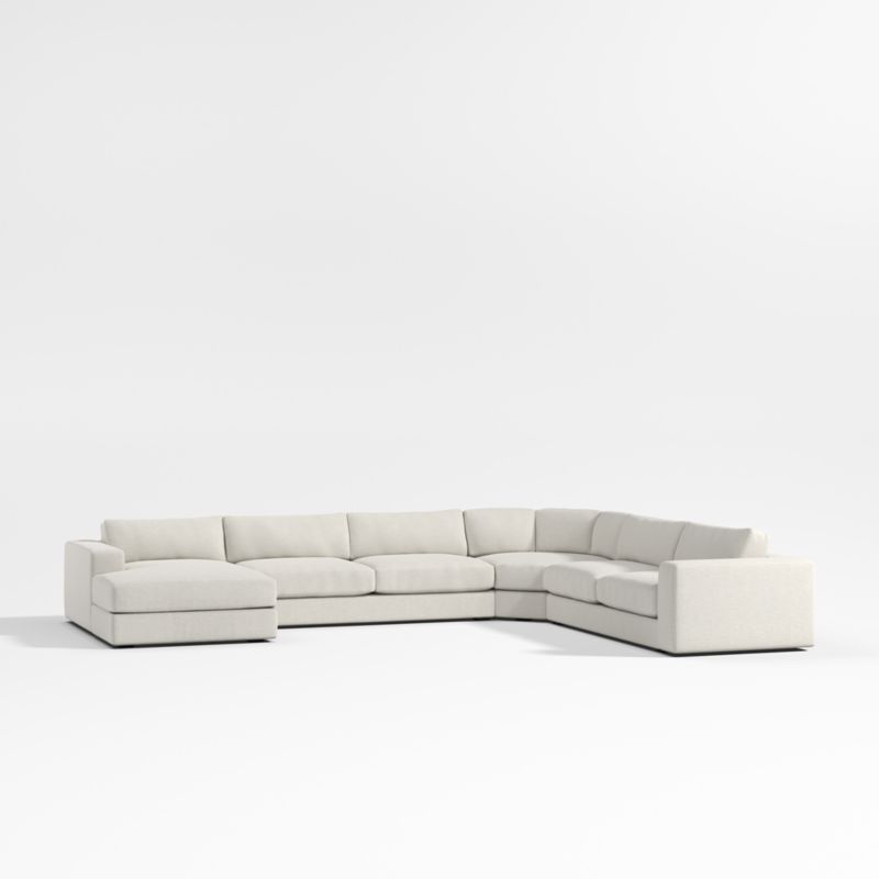 The modern ease of coastal living, no matter where you live. Oceanside brings laid-back style to the living room with its clean lines, soft-yet-supportive cushions and ultra-wide arms for perching your drink or device. Scaled with a regular seat depth and low seats, the four-piece sectional—wedge, armless sofa, left-arm chaise and right-arm sofa—is great for anyone who likes to sit a little more upright, yet loves the low and modern look. And as your go-to place for lounging, you'll love Oceanside in our durable, family-friendly performance fabric.