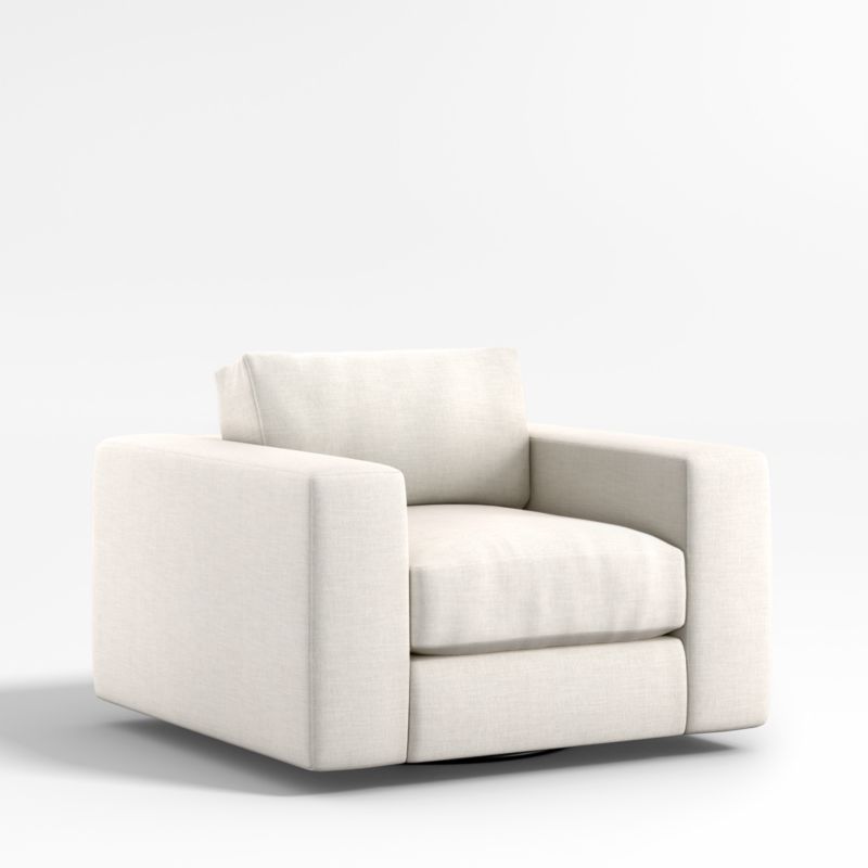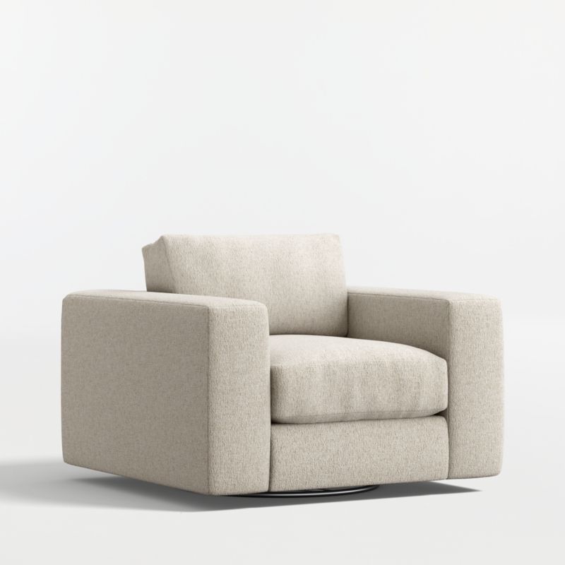 The modern ease of coastal living, no matter where you live. Oceanside brings laid-back style to the living room with its clean lines, soft-yet-supportive cushions and ultra-wide arms for perching your drink or device. Scaled with a regular seat depth and low seat, the swivel chair is great for anyone who likes