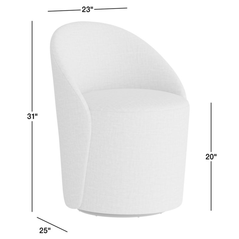 All fresh curves and comfort, Odette offers a statement-making seat designed for lingering. A cushioned cylinder shapes an all-in-one seat and base, enfolded by a rounded back panel padded for relaxing. Fully upholstered in fabric, the chair swivels to let you easily follow tableside conversation and to give you a sweeping view of the dining room.