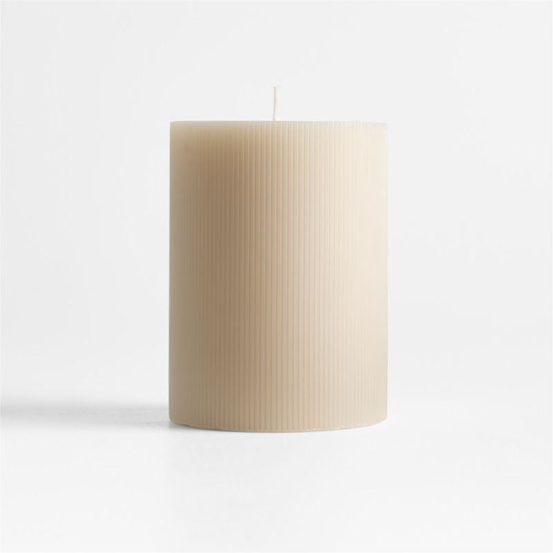 Off White Ribbed Pillar Candle 3"x4" by Laura Kim
