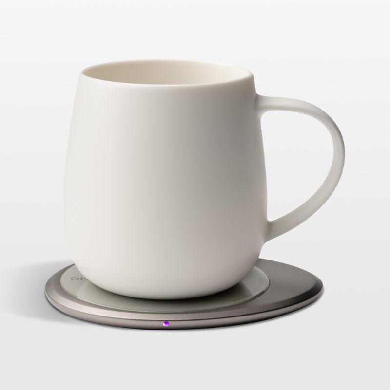 Keep your tea or coffee toasty warm with this stylish mug and warming pad set. Using induction energy, the base—which also doubles as a wireless phone charger—heats up the metallic layer at the bottom of the ceramic mug to keep your beverage at the perfect temperature. We love the practicality of the set as much as the modern elegance of the design, from the refined simplicity of the white mug to the river rock-inspired shape of the pad.