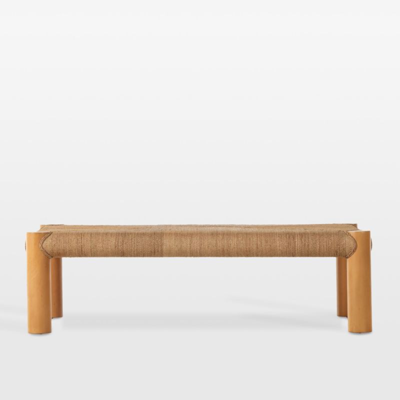 Olin's textured top puts a traditional twist on the coffee table's modern proportions. Set low to the ground, the table takes a sturdy stance on chunky columns of light-washed mahogany. Mde with braided sugar palm leaves, the rush woven top wraps around the frame rails, creating the weaving technique's distinctive triangle pattern. We love the way Olin brings natural texture to a bold silhouette.