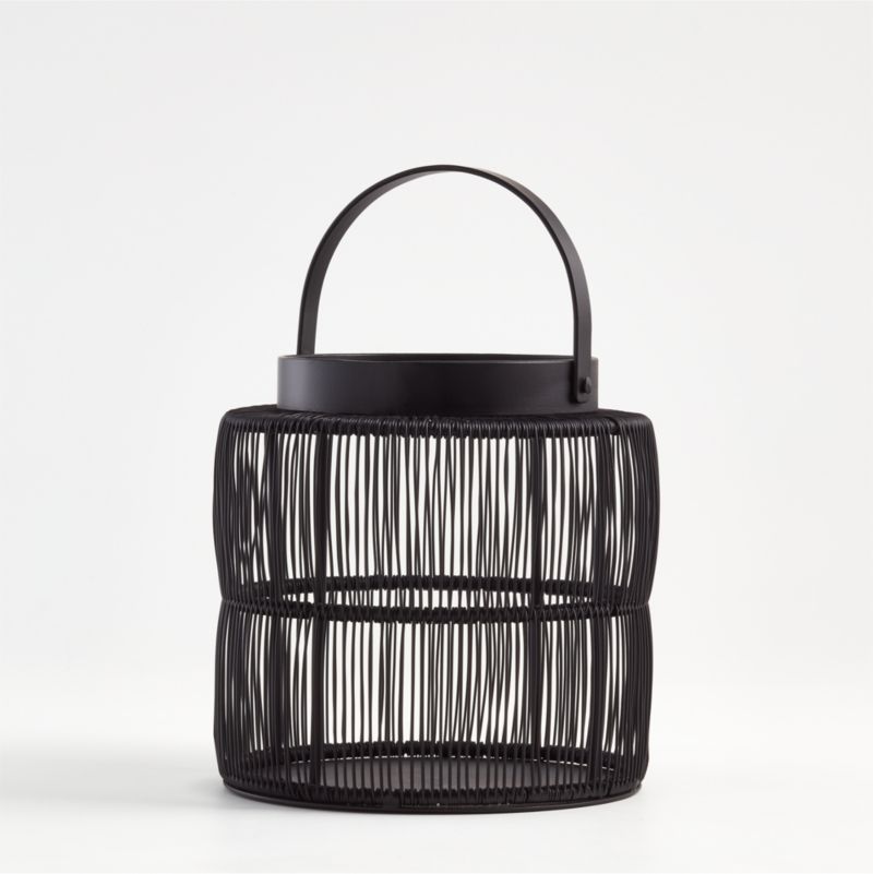 Slim vertical wires cinch to create the slight curves of our medium Ora outdoor lantern. Recalling the look of traditional woven wire lamps that hung from Chinese fishing boats, the black-coated iron lantern sports a charming rounded handle and an open weave that casts delicate shadows when lit from within. Cluster with the coordinating large Ora lantern or scatter in multiples about the patio, deck or balcony.