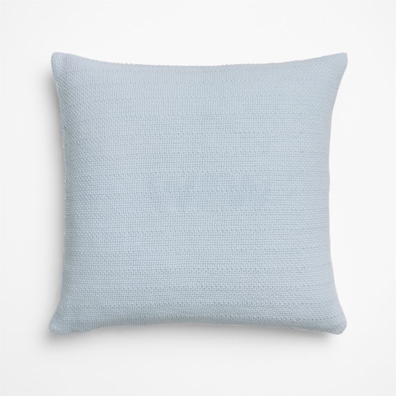 A chunky-yet-refined basketweave gives the classic cotton throw pillow artisan appeal. Woven of organic cotton, the pale blue pillow layers beautifully with other solid pillows while adding touchable texture to the mix. Fill the square cover with a plush feather-down or lofty down-alternative insert (sold separately).