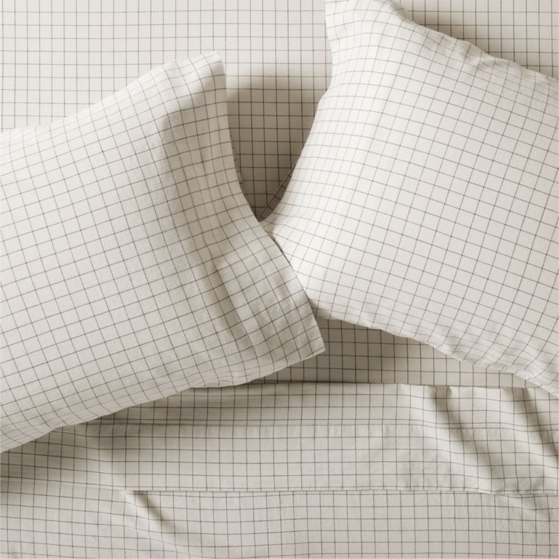 Slender lines intersect in a crisp grid on this sheet set—a fun yet subtle way to add pattern to your bed. The herringbone weave and stitched lines create a vintage feel, while the navy blue and natural palette looks fresh, neutral and modern. The sheets add a pop when paired with our solid shams and duvet covers, or pair the set with our striped bedding for intriguing pattern play.