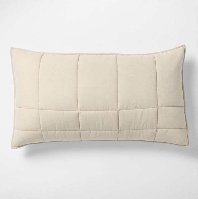 Inspired by puffer jackets, this pillow sham balances playful pouf with crisp geometry. A channel-stitched grid gives the cover dimension and definition, while the voluminous fill creates plush depth and warmth. Yarn-dyed for a heathered finish, the organic cotton-blend fabric showcases a subtle range of sandy hues. Mix and match the sham with our other Sand Beige bedding for a dreamy look, luxe lounging and a super-cozy sleep.