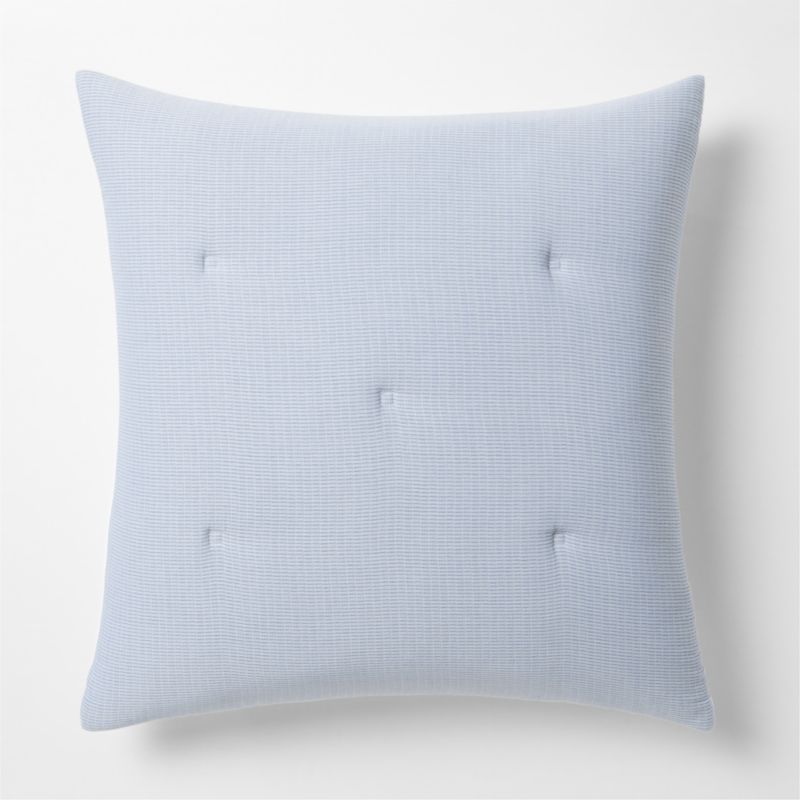 Layers of puckered gauze double up for a delicately crinkled pillow sham in dreamy, misty blue. Quilted by hand with thread ties that finish the sham with the look of a treasured heirloom, the organic cotton fabric offers soft breathability and a breezy vibe. Our exclusive cotton textured sham pairs with the matching comforter to make a modern bed with irresistible texture and a casual, laid-back look.